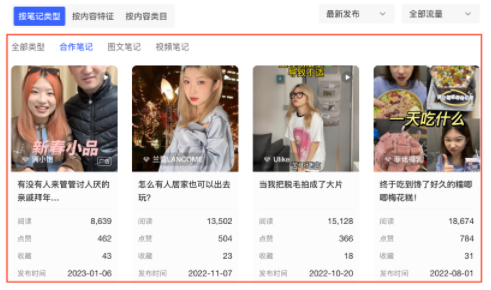 ● 傳播表現(xiàn) 從閱讀、互動(dòng)中位數(shù)兩個(gè)維度展示近期筆記表現(xiàn) | 快速獲知博主近期筆記的數(shù)據(jù)表現(xiàn)、和同類博主的對(duì)比 | 支持by日常/合作筆記查看 |