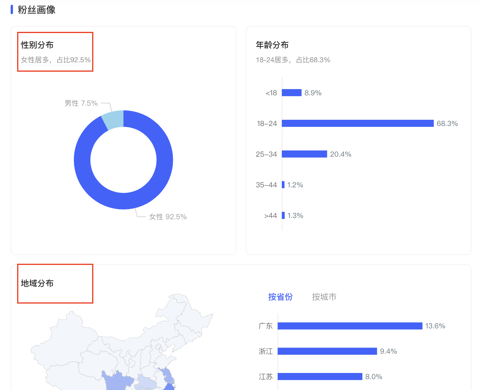 粉絲畫(huà)像 | 粉絲性別、地域、設(shè)備等 | - | 了解“博主的粉絲是什么樣的?” 對(duì)應(yīng)博主的粉絲性別、年齡、興趣等 |