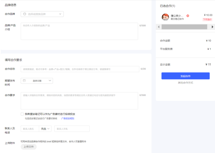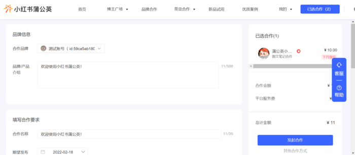 3.發(fā)起合作 填寫好合作需求后點擊【發(fā)起合作】即可完成下單。