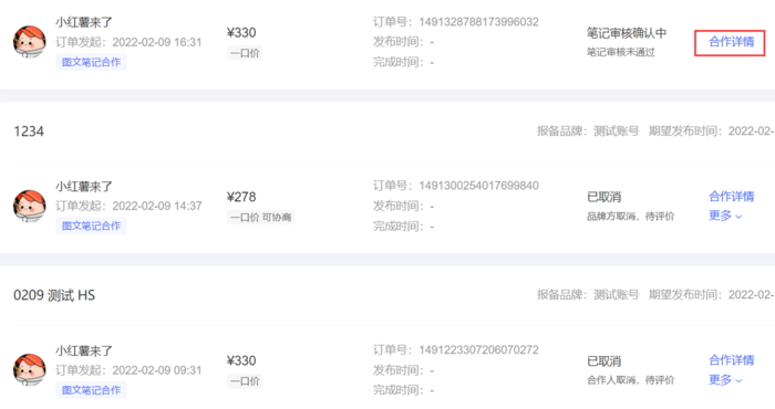 4.合作詳情 下單完成后可至【訂單管理】找到對應訂單查看合作詳情,以及進行后續(xù)操作。