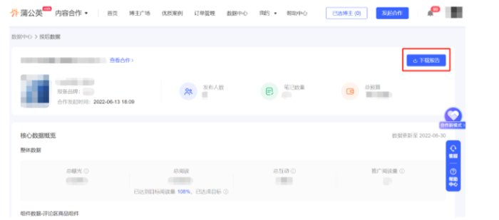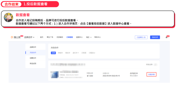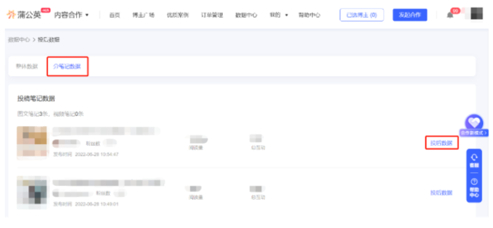 合作進入筆記投稿期后,品牌可進行投后數(shù)據(jù)查看。